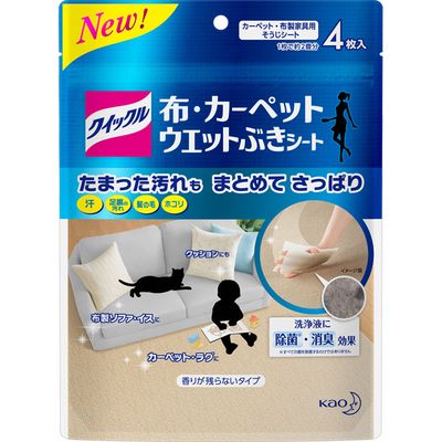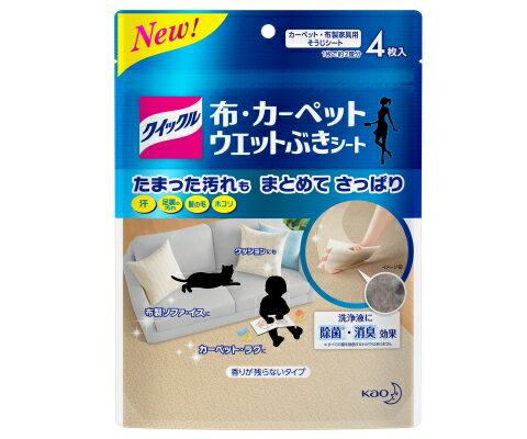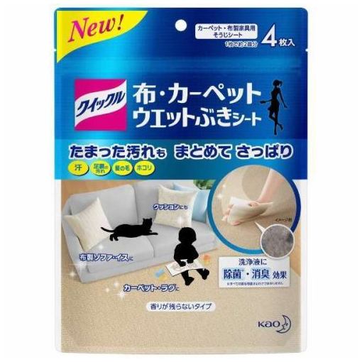 花王 クイックル 布・カーペットウエットぶきシート 4枚入(4901301350510)清掃用ワイパー/汚れが気になるのに洗えない布製品を,ウエットぶきできるシ-ト