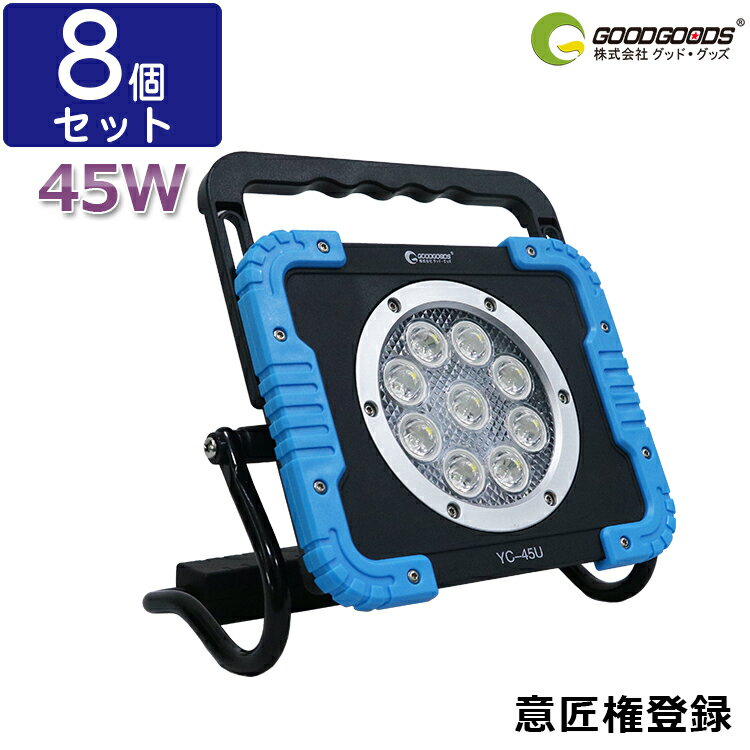 【8個セット】充電式 作業灯 led 45W 4500lm 集光型 ワークライト マグネット付き LEDライト 投光器 キャンプ ボータプル投光器 夜間庫照明 防水 屋外 アウトドア 防災グッズ キャンプ USB出力 モバイルバッテリー (YC-45U)